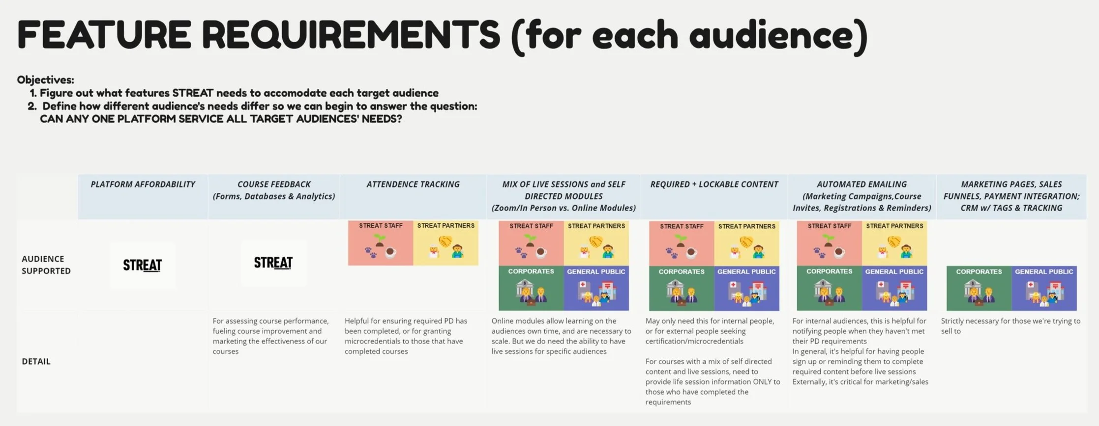 Researching and recommending platforms to service STREAT’s expansion into the workplace training market to empower other businesses and build a new revenue stream.